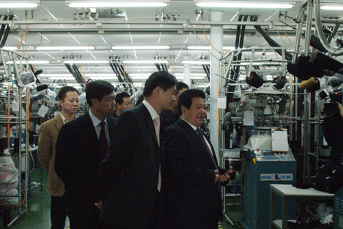 浪莎總裁陪同貴州省畢節(jié)市周書記參觀公司廠區(qū)