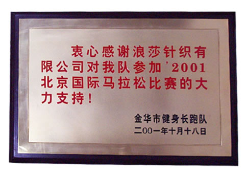 對(duì)2001年北京國(guó)際馬拉松比賽的支持