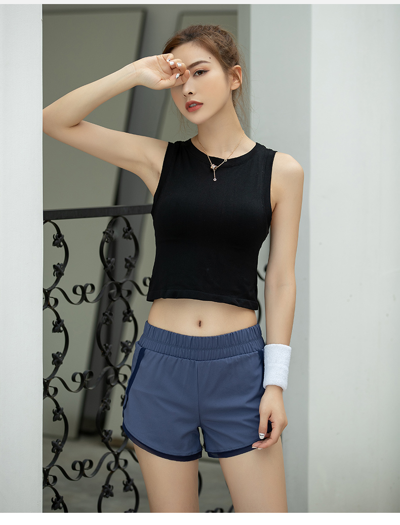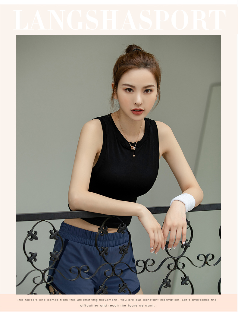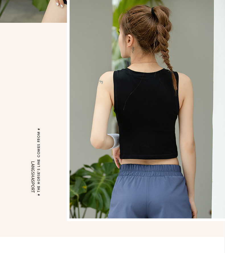 浪莎運動背心女緊身露臍無袖跑步瑜伽服上衣罩衫薄款健身速干T恤