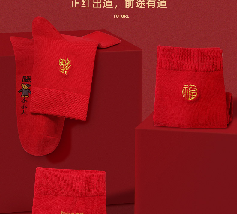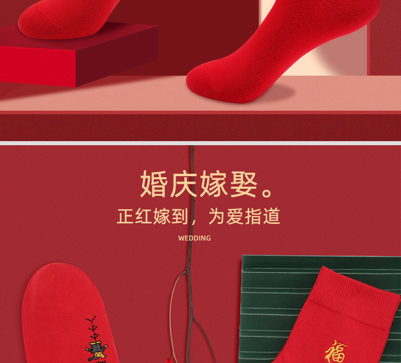 浪莎紅襪子女男士本命年純棉踩小人屬牛年結婚情侶全棉大紅色棉襪